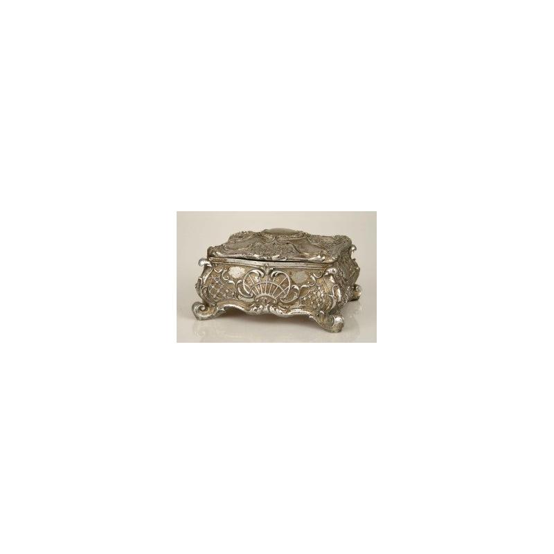 Joyero con tapa o caja rectangular para decoración de estilo clásico fabricada en resina color plata.