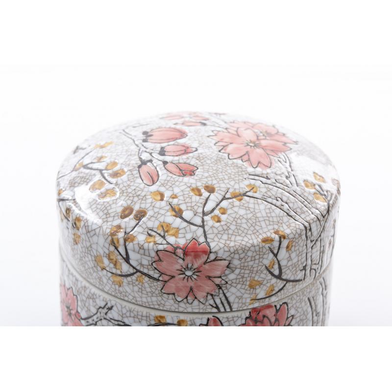 Con esta caja redonda de porcelana con flores en color salmón dará un toque especial a su hogar.