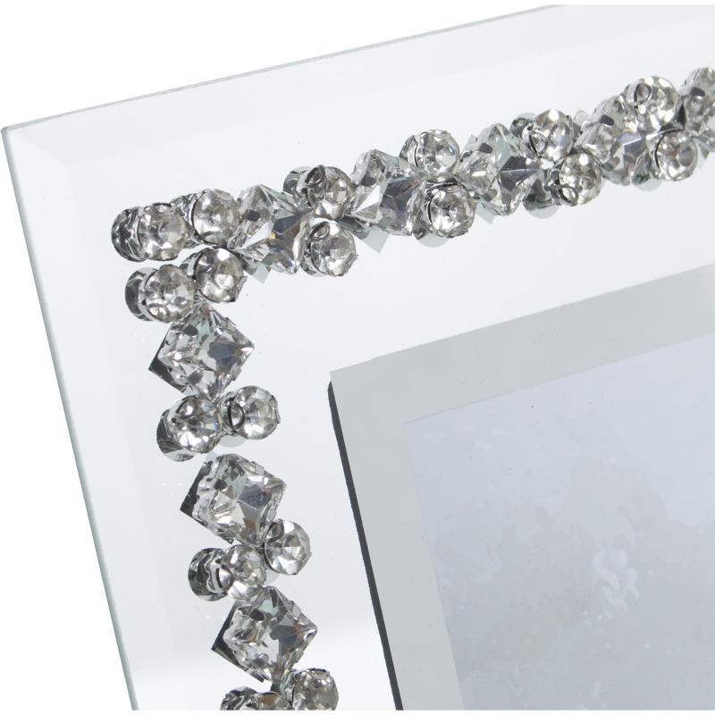 Portafotos espejo para fotos con medida de 15x20 cms y detalles de brillantes, ideal para decorar su hogar con las fotos familiares.