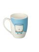 Taza mug para desayunos en colores azul pastel y blanco con un divertido vaso de leche por una cara y por la otra una original frase para alegrar el día a cualquiera: "Tú y yo hoy mojamos". Una taza perfecta para regalar.