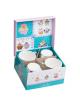 Conjunto de 4 tazas de desayuno presentadas en caja paralelo regalo con imágenes divertidas de cupcakes.